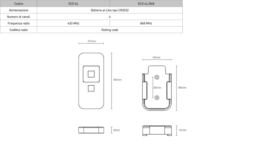 433.92 MHz rolling code technology and quick channel selection via dedicated button.