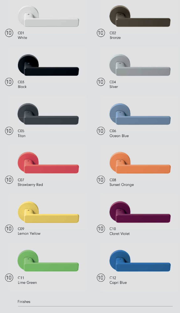 Finishes: numerous color variations available.