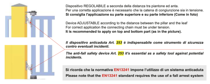 Nova-Ferr 253 anti-fall gate safety device guarantees maximum safety for the use of swing gates.