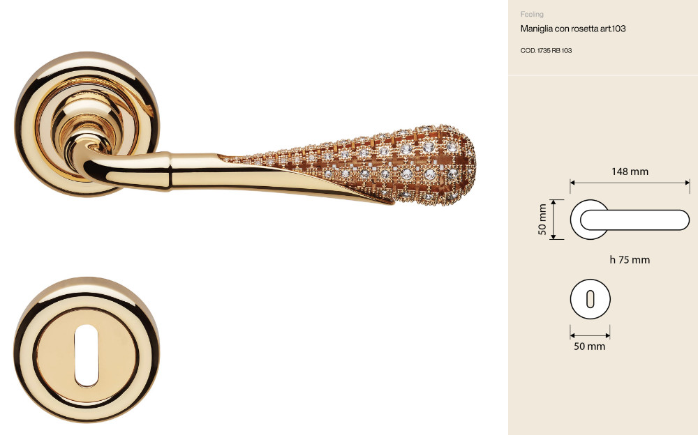 handles with Swarovski crystals in a distinctive style, where aesthetics and functionality blend in products entirely designed and manufactured in Italy, at the Vobarno (BS) factory. Each handle is born from the