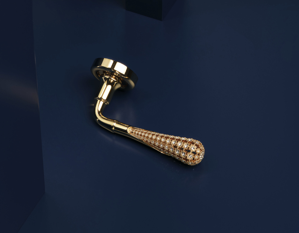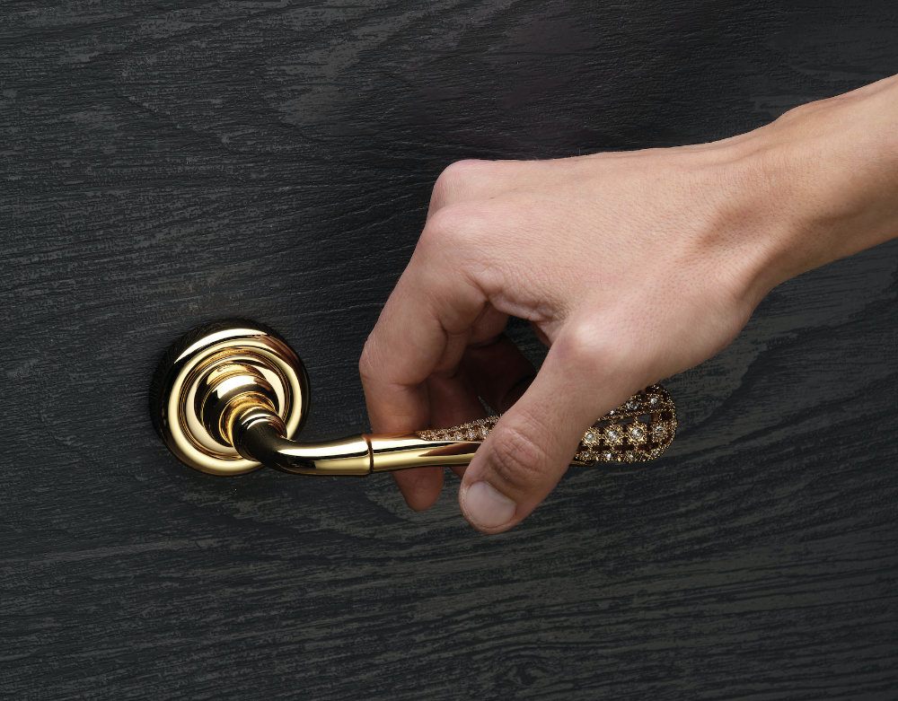 handle embellished with original Swarovski® crystals, individually hand-set. The result is an object that captures the light, transforming the act of opening a door into a refined and spectacular experience.