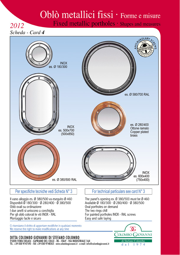 Discover the best portholes made in Italy by the Colombo Giovanni company