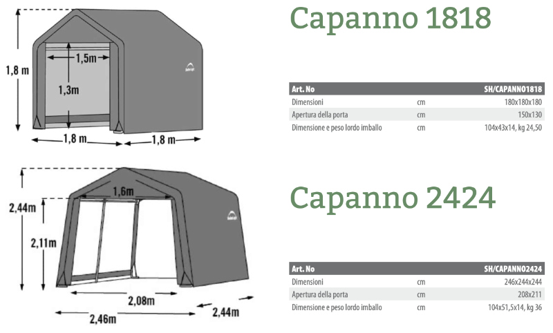You can choose between two models of ShelterLogic garden sheds (code 1818 or 2424).