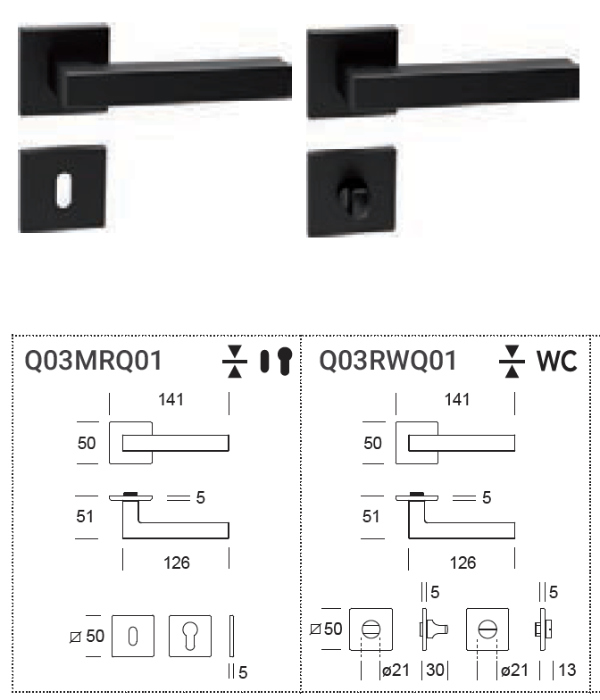 - Slim square rosette 50x50x5mm (for rectangular version contact us);
