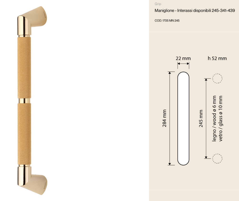 Shop online at Windowo and choose the Grip Linea Calì handle in the finish that best suits your space: the design that has also won over Nespresso, now in your home.