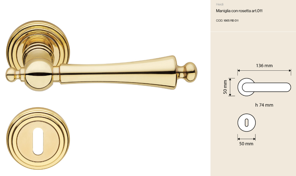 Made of brass and available in various fine finishes , Heidi Linea Calì is the ideal door handle for luxury residences, where the beauty of the furnishings combines with the functionality of a timeless accessory.