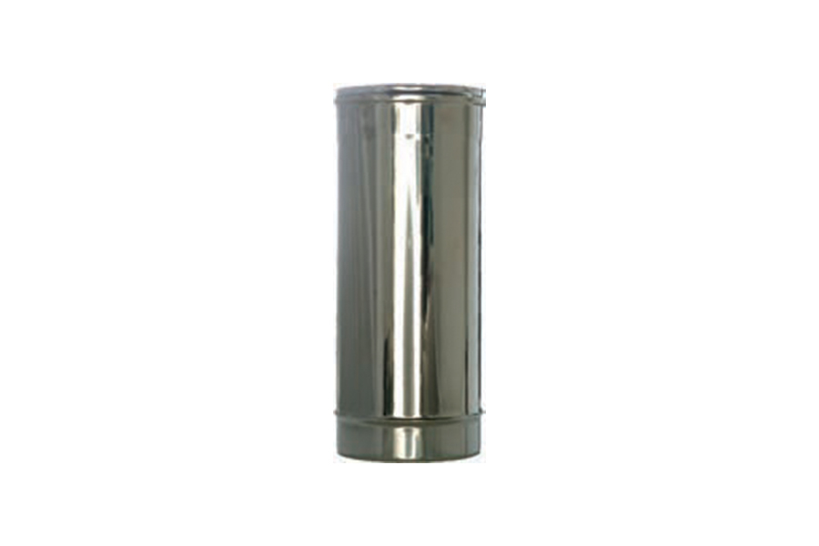 Straight duct hood pipe in AISI 304 stainless steel, about half a meter long and circular base.