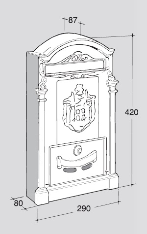 - Directional outdoor mailbox with dimensions 290x450x97mm, made of painted die-cast aluminum;