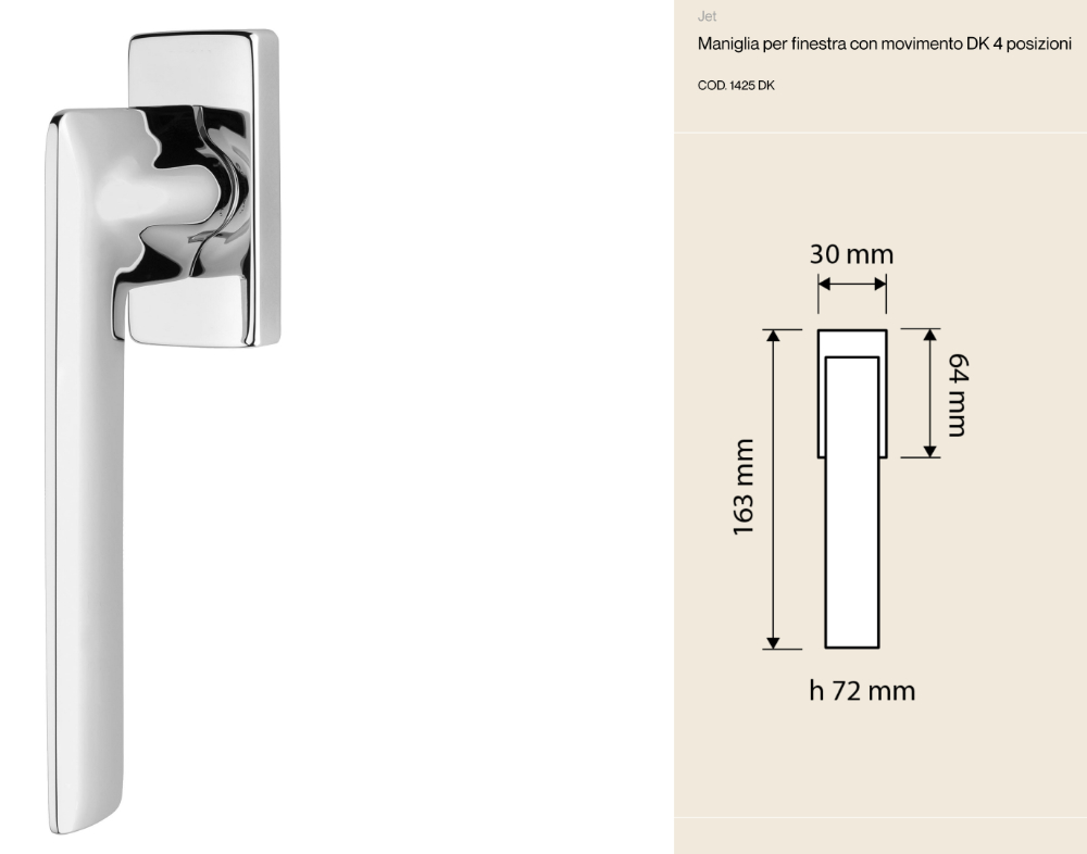 Jet Linea Calì, window handle with 4-position DK movement that combines elegance and functionality in a minimal and contemporary design.