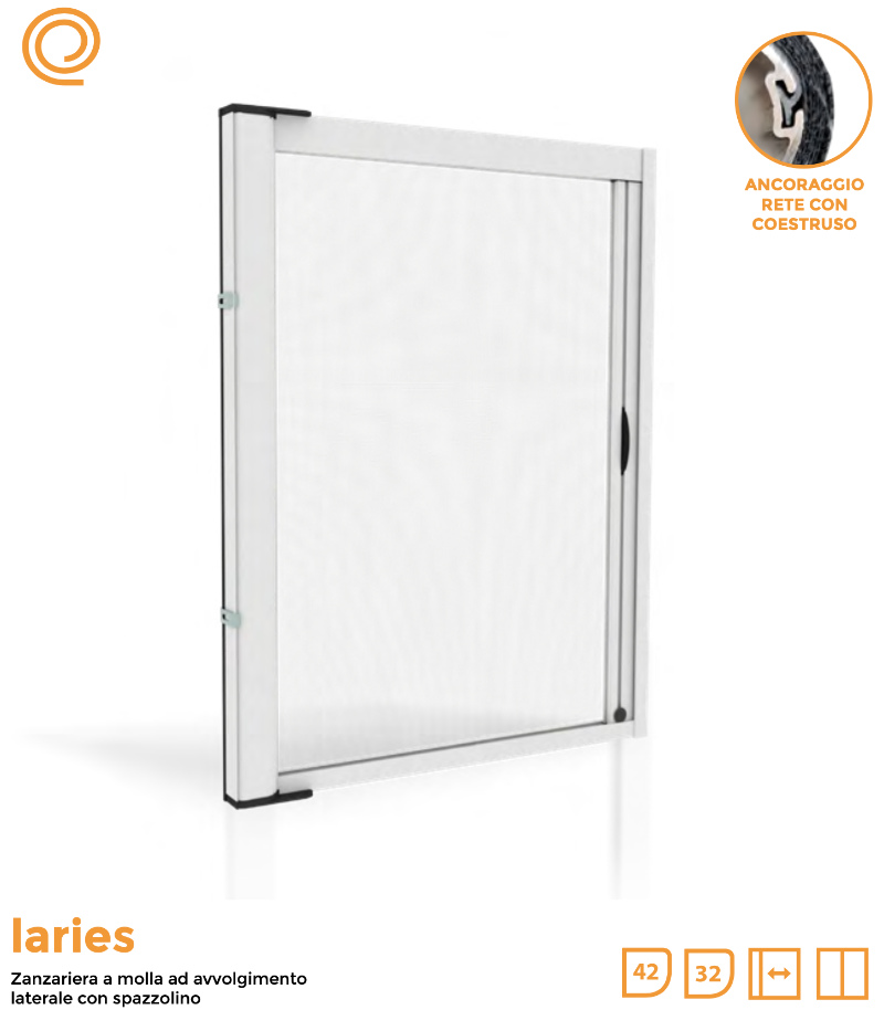 42 mm footprint , however, if you have space problems and need a solution with a small footprint, you can request the 32 mm footprint version at the same price. This version represents an excellent solution for spaces with reduced dimensions, while still guaranteeing effective protection against insects and pollen.