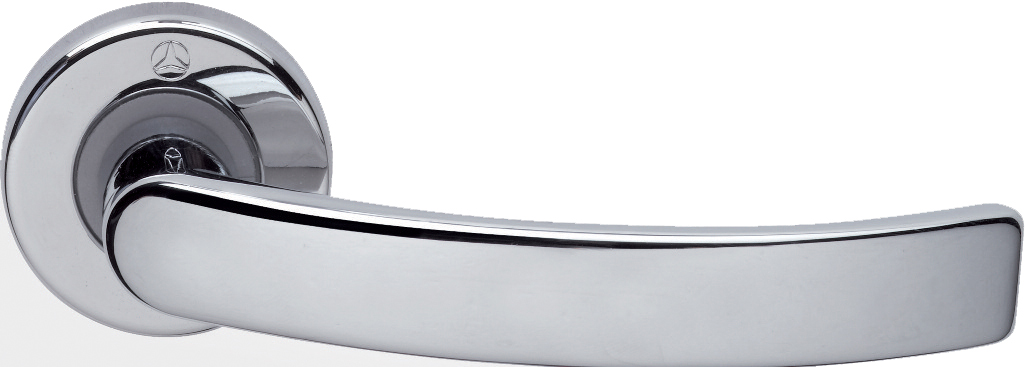 Pair of handles, pair of roses, small parts and accessories for assembly and, if you desire, also a pair of escutcheons.