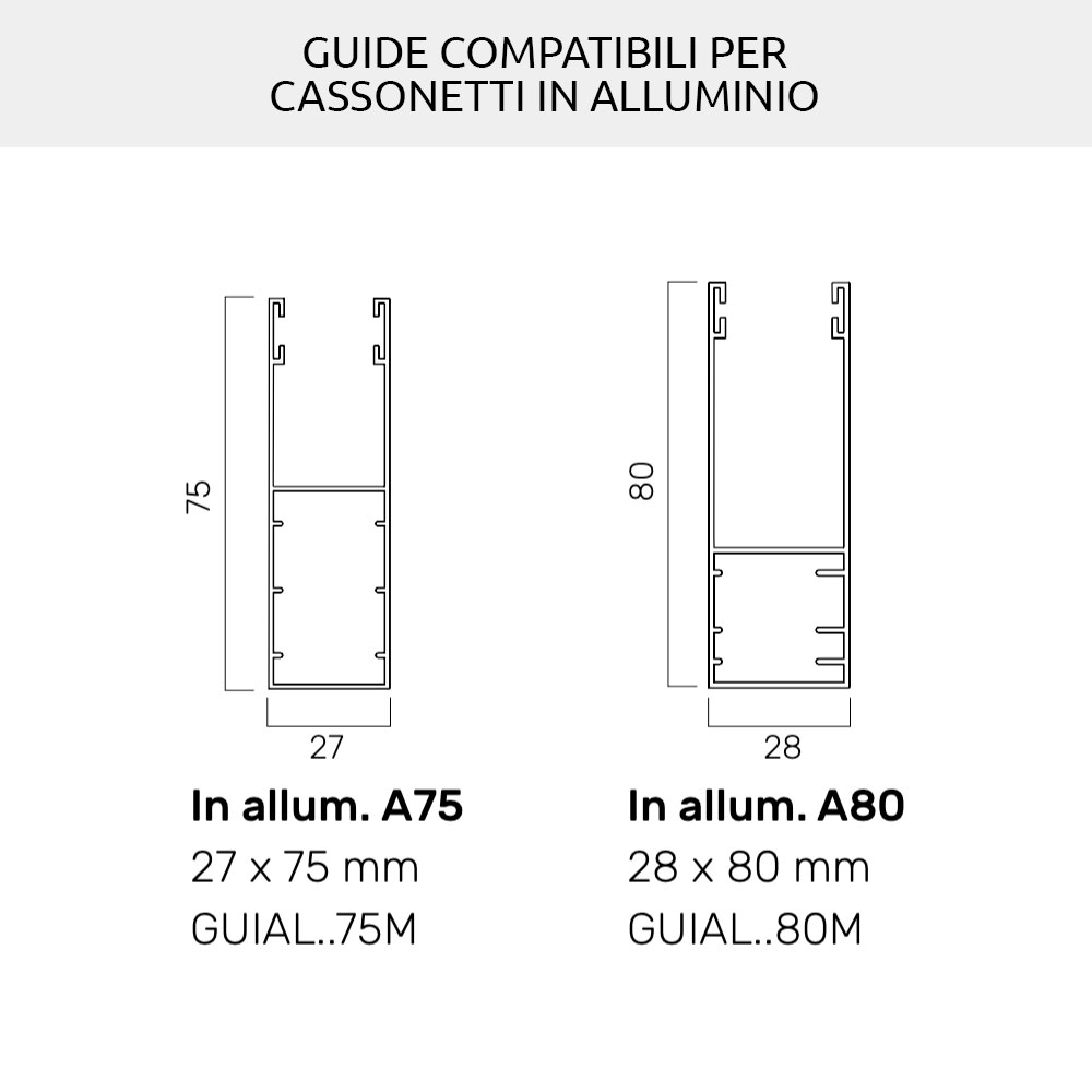 Replacement or new installation of roller shutters and sliding guides: for the width of the roller shutter, with reference to the guides to be used, the necessary tolerances must be taken. You can use the old guides if they are in good condition and if they have at least 16.5mm of usable space inside.