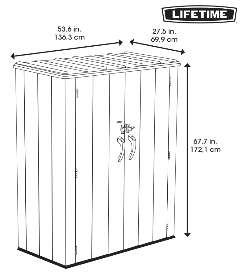 Lifetime Milano Outdoor Plastic Closet - HDPE Polyethylene - 136x70 cm