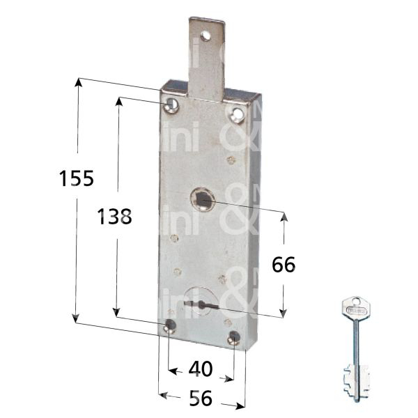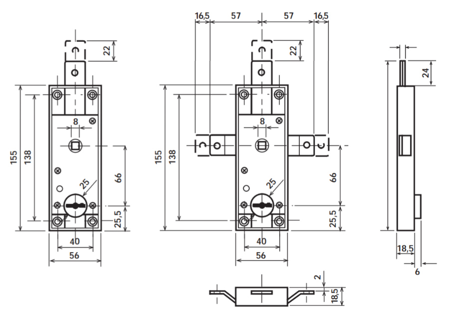 Lock for overhead doors Potent 1640 - technical drawing and measurements:
