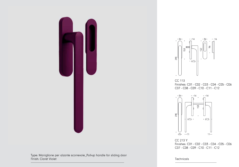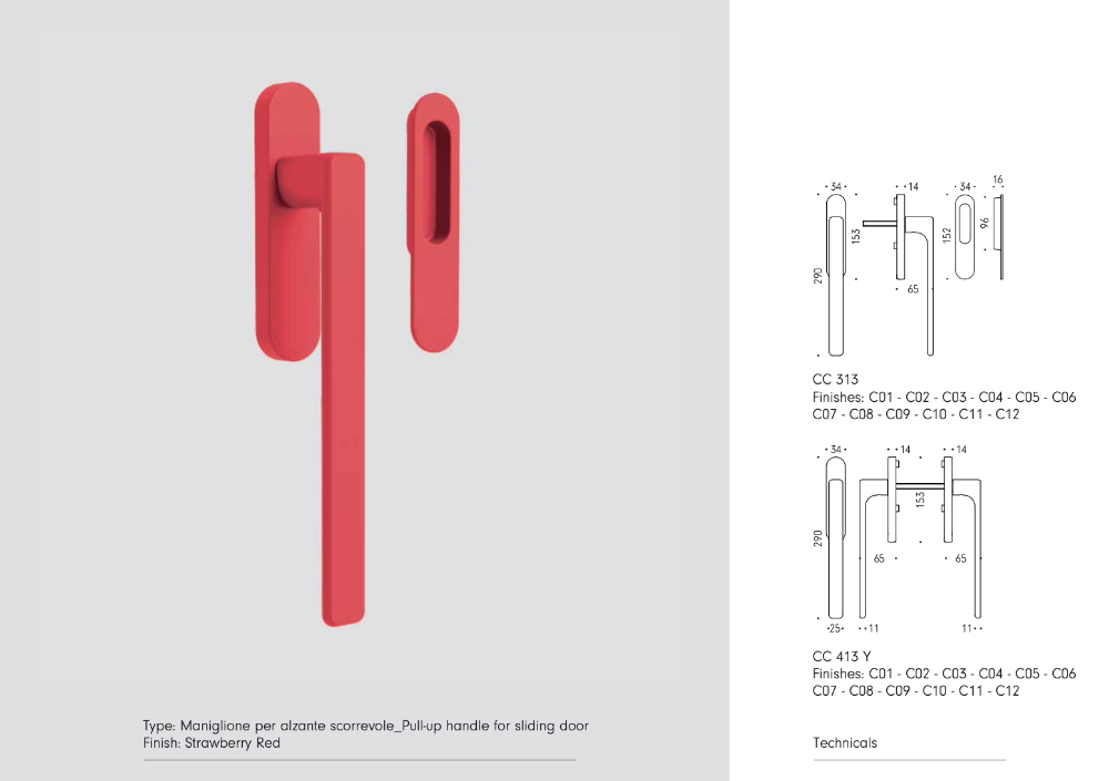 The COLOMBO DESIGN MOOD lift-sliding handle is designed for those who wish to combine functionality, design and colour customisation .