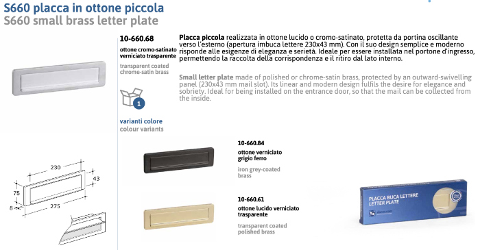 Sale of brass letterbox plates made in Italy