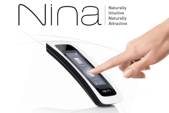 Nina io Somfy, a centralized remote control with a touch screen that facilitates interaction, emanates new sensations and allows your wishes to be guided.
