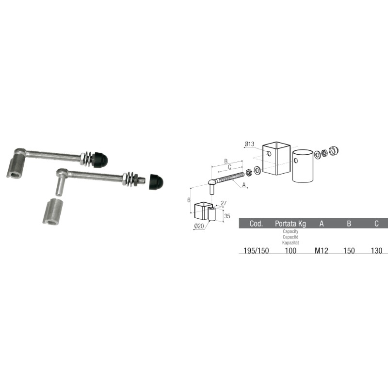 Stainless steel hinges with steel bushings to be welded, code 195/150 Brevetti Adem.