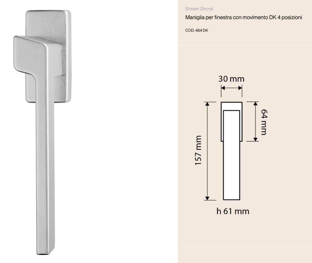 Stream Zincral Linea Calì Window Handle with DK Movement