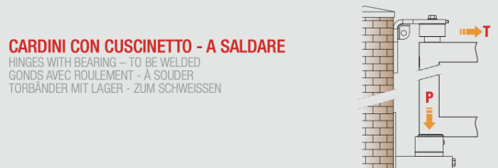 Type of gate hinges: hinges with bearing to be welded.
